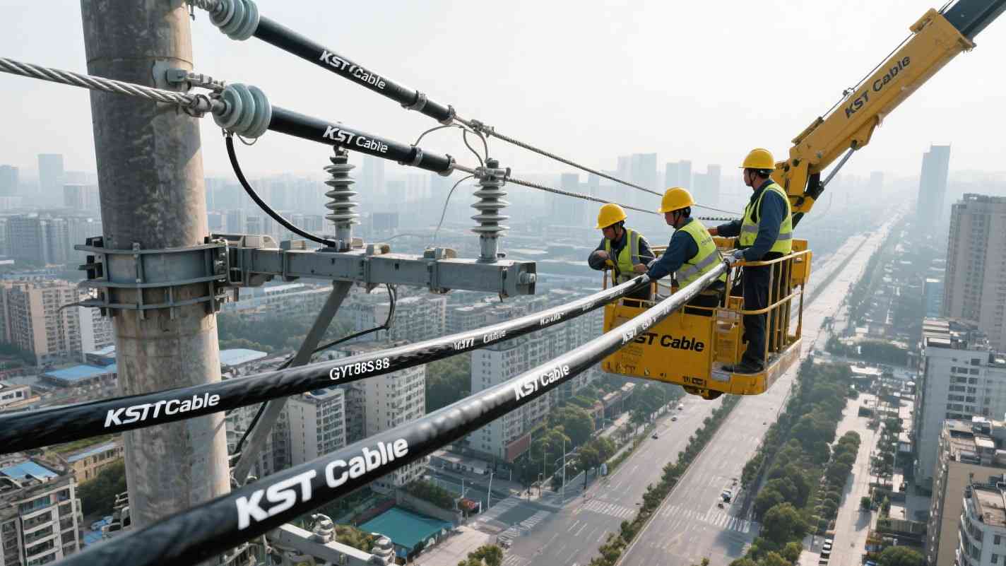 - Aerial Tension Control: Maintain long-term tensile loads below 3000N to avoid strain on fibers, using tensioning devices calibrated for the cable’s weight (145-420kg/km).